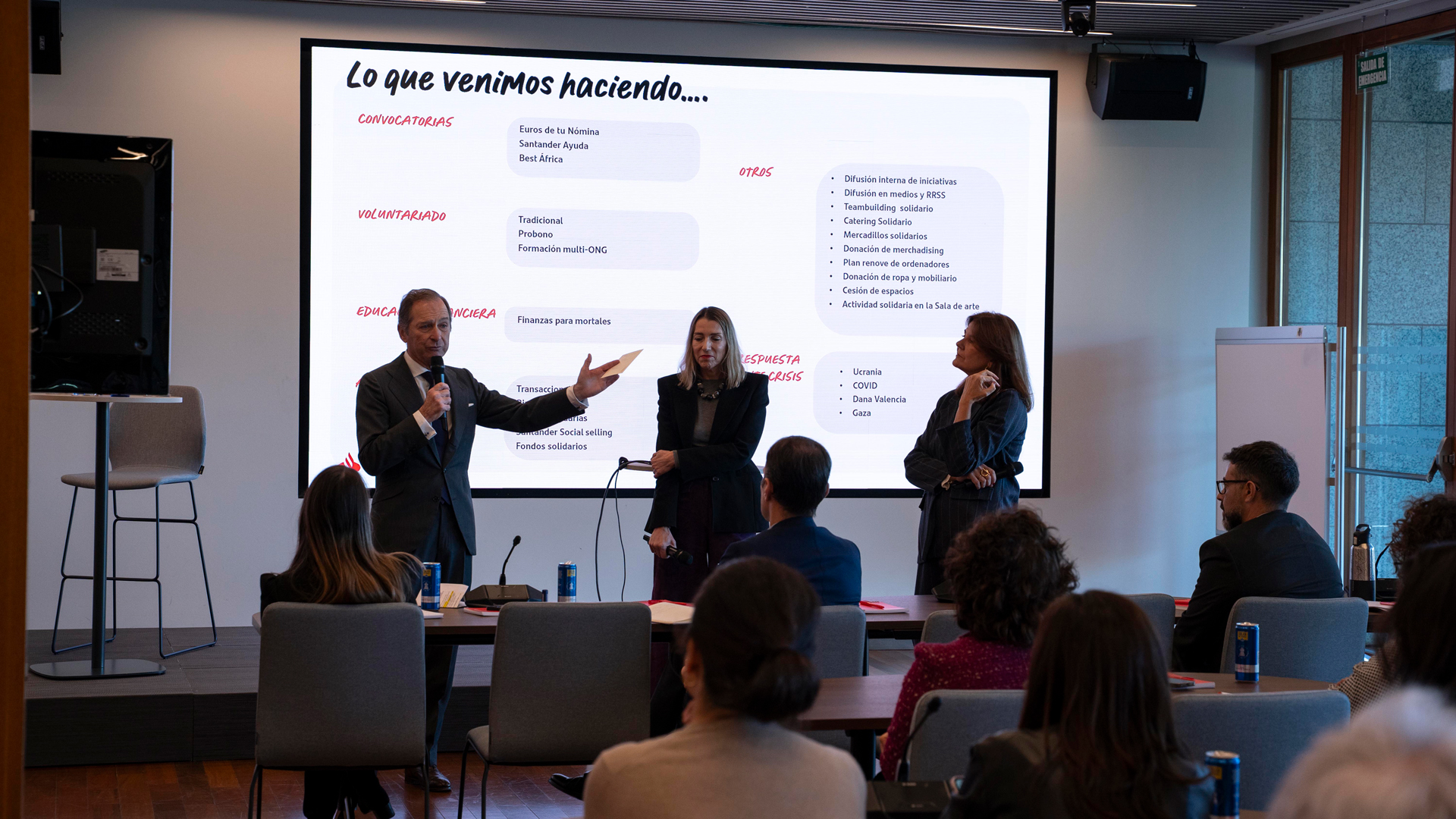 Finanzas para Mortales, junto a Fundación UCEIF, donde la entidad ofrece programas de educación financiera gratuita en ahorro, prevención de estafas y banca digital; en el primer semestre de 2025 formó a 32.900 personas en 1.270 sesiones con 350 voluntarios. Además, desde Santander Asset Management se impulsan iniciativas de impacto social a través de la Gama de Fondos Sostenibles y Solidarios, donde se ha donado cerca de 25 millones de euros en 25 años a más de 900 proyectos en economía social, empleo, salud y educación financiera, beneficiando a 200.000 personas.